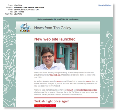 As well as a new web site, we have set them up to use our own e-mail marketing system. Bespoke templates allow them to write and send their own promotional html e-mails to their growing database of customers: